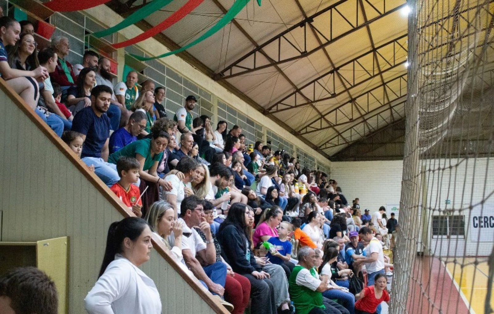 | Público presente no ginásio acompanhou um jogo intenso, com grandes defesas, lances de habilidade e muita garra por parte das atletas |